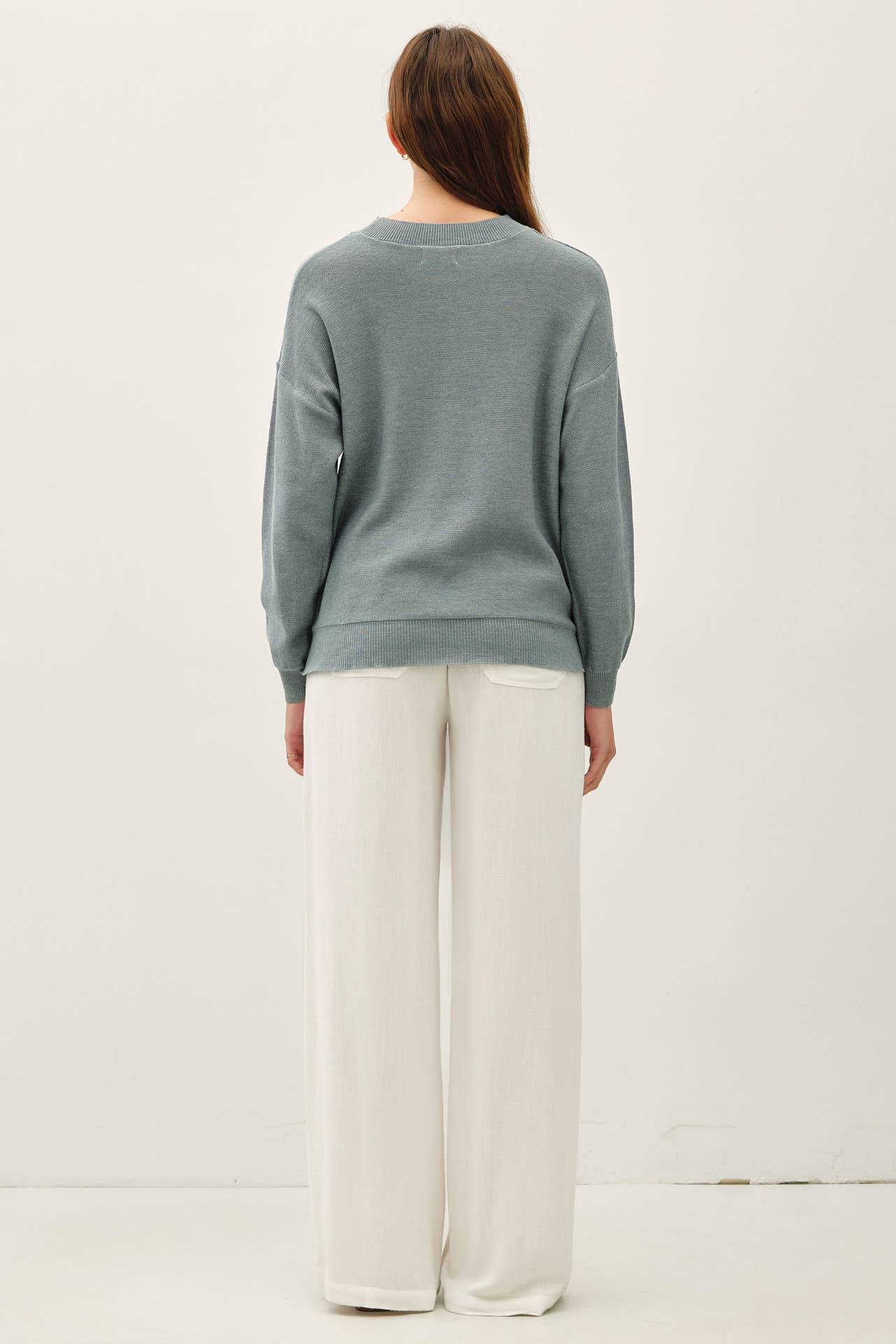 Experience effortless comfort with this Soft Teal Lightweight Sweater, designed in a flattering loose fit that moves with you. Crafted from a breathable cotton blend, its long sleeves offer just the right amount of coverage without feeling heavy. The gorgeous dusty teal shade adds a subtle pop of color to any outfit, making it an ideal layering piece for year-round wear. Perfect for cozy days or casual outings, this sweater combines softness and style in one versatile essential.